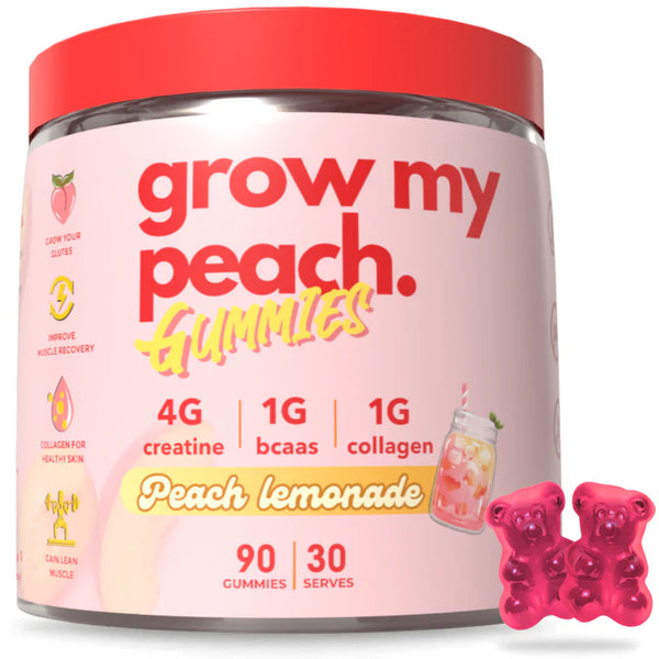 Grow My Peach Gummies are your new gym bestie, crafted to help you build that dream booty, boost energy, and bounce back faster after every workout! With a juicy Peach Lemonade flavor and a powerful trio of performance ingredients, these delicious gummies are designed to fuel your fitness goals and keep you on track—all in one sweet, low-calorie treat.